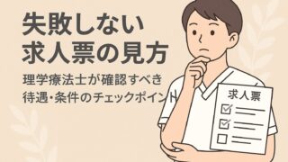 転職ノウハウ 失敗しない求人票の見方|理学療法士が確認すべき待遇・条件のチェックポイント 理学療法士が転職する際に注意すべき求人票のチェックポイントを解説。勤務時間・給与・福利厚生・教育体制など、求人票と現場のギャップを防ぐための実践的な確認方法を紹介します。 2025.09.25 転職ノウハウ