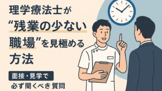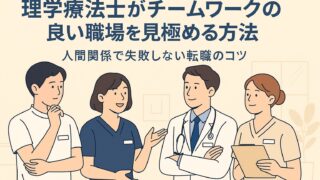 理学療法士が離職率の高い職場を避けるために、応募前の見学・面接で確認すべき7つの兆候を解説。人間関係・業務量・教育体制など、後悔しない転職のために必ず押さえておきたいポイントをわかりやすくまとめました。