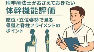 体幹機能を評価する第一歩は姿勢観察。理学療法士が知っておきたい座位・立位姿勢の見方や、骨盤・脊柱アライメントから読み取る体幹の安定性とバランス評価のポイントを解説します。