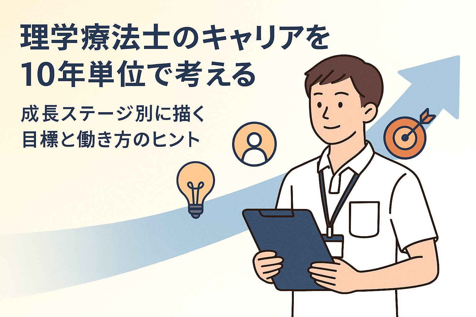 理学療法士のキャリアは、資格を取った瞬間から始まる学びと成長の積み重ねです。10年単位で「どんな理学療法士でありたいか」を見直すことで、自分らしい働き方が見えてきます。今日の一歩が、次の10年を形づくります。