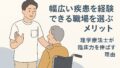 この5つを意識して職場を選べば、毎日の臨床は確実に学びとなり、キャリアもぐっと広がります。