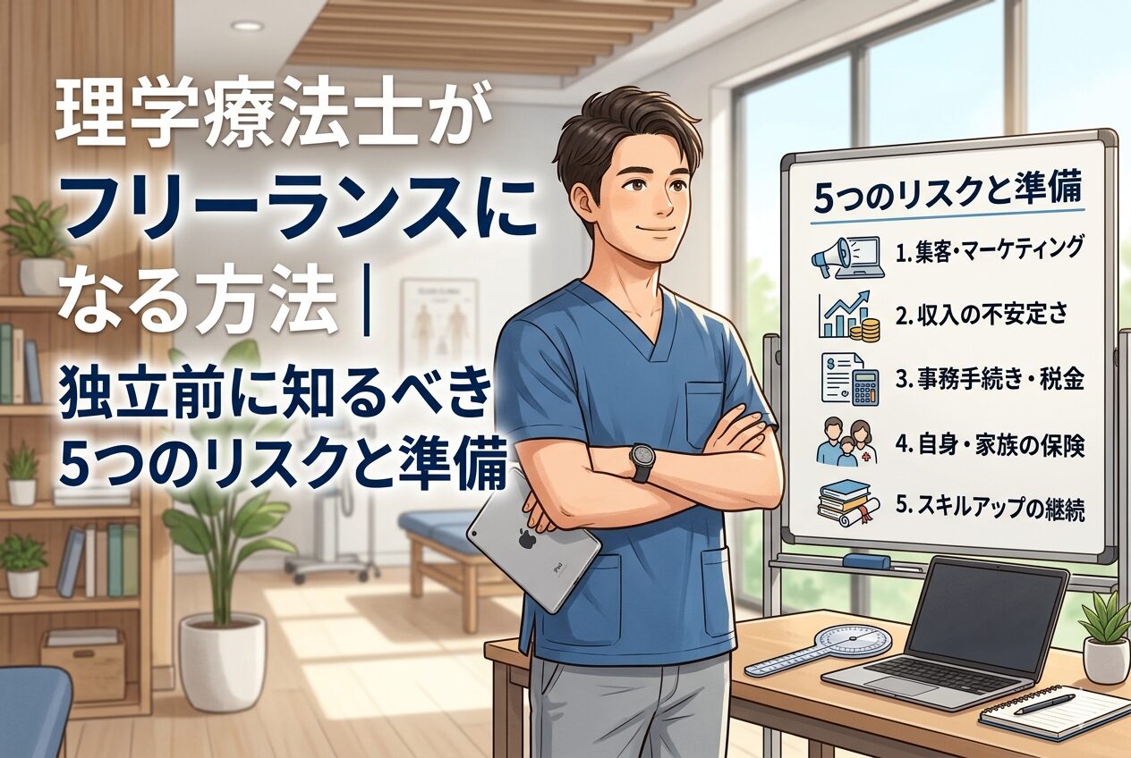 この記事では、理学療法士がフリーランスとして働く方法、独立前に知っておくべきリスク、具体的な準備について整理します。独立を煽るわけでも否定するわけでもなく、リアルな選択肢として考えるための情報をまとめました。