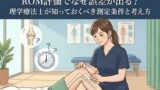 • 更衣:上肢運動に合わせて体幹が安定しつつ適度に回旋。肩の可動性だけに依存すると代償が増える。