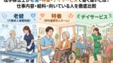 この5つを複数の職場で比較することで、求人票だけでは見えなかった職場の実態が見えてきます。1か所だけ見て決めると比較の基準ができないため、少なくとも2〜3か所の見学を経てから判断することをおすすめします。