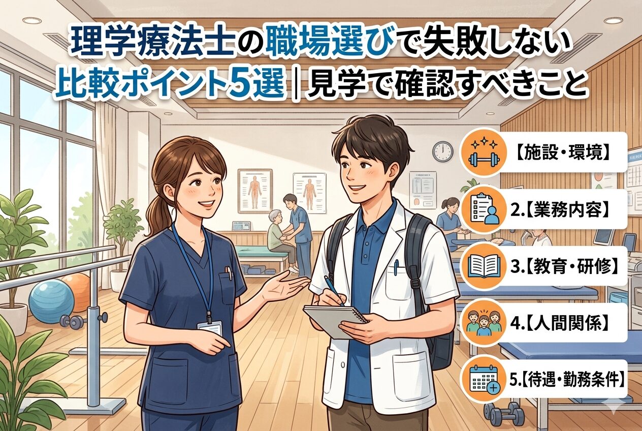 この記事では、理学療法士が職場を選ぶときに確認すべきポイントと、見学で何を見ればよいかを具体的に解説します。